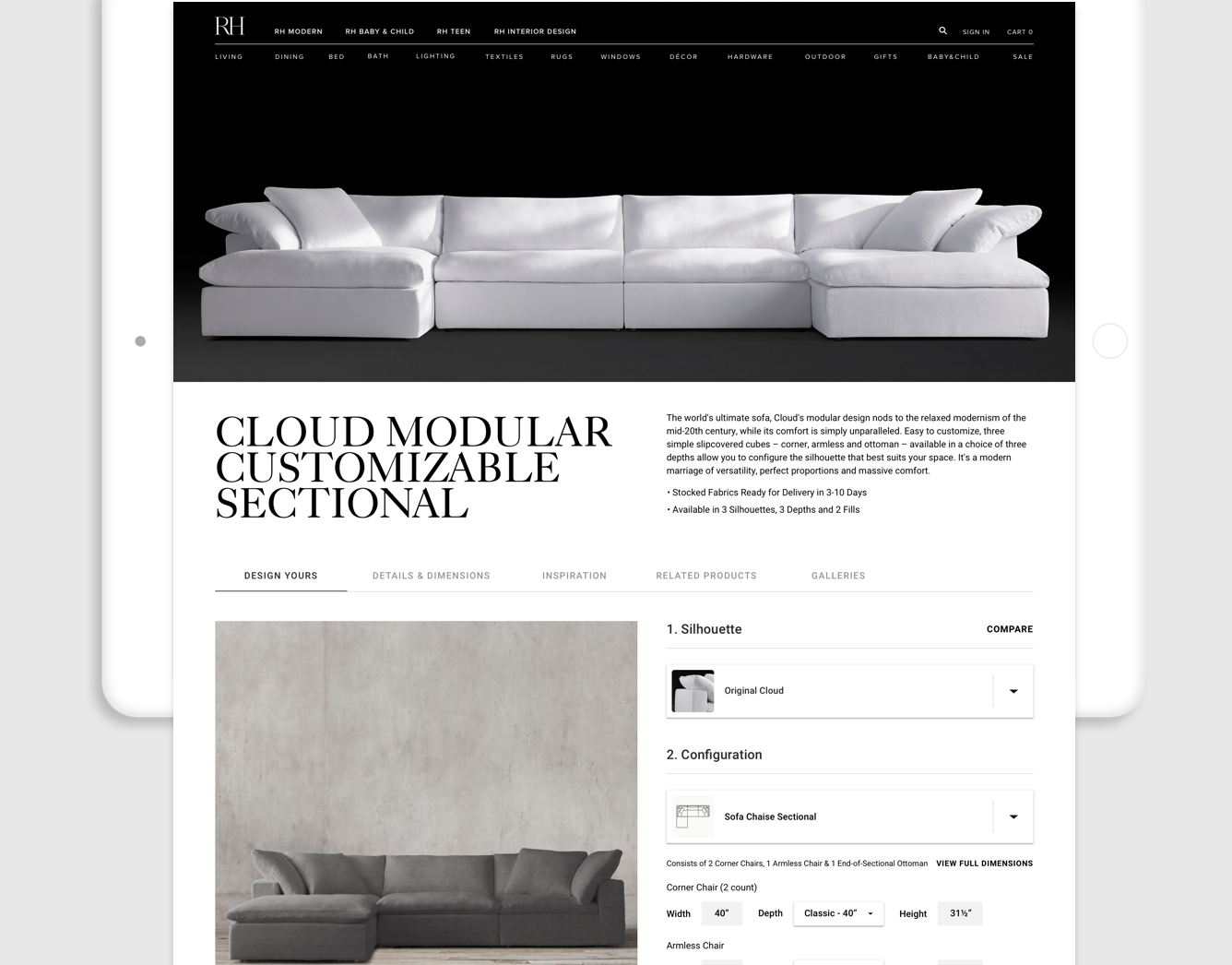 RH | cloud sofa experience landing page